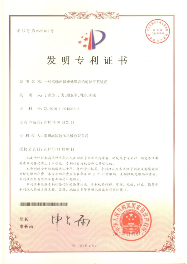 一種高輸出扭矩低噪音的道路平整裝置