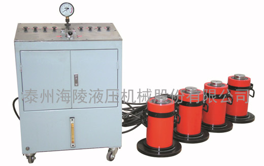 我公司設計制造的(PLC)同步千斤頂廣泛適用于大型建筑工程設備,構件的同步起頂、調整及鐵路、公路、橋梁工程的架設。它可根據現場(chǎng)的實(shí)際情況選配不同規格、型號、數量的超薄型JRSM系列、薄型JRCS系列、大噸位DYG系列10T、20T、30T、50T、100T、150T、200T、320T、500T千斤頂。以及配備1.1KW、2.2KW、3KW、4KW、5.5KW、7.5KW、13KW等不同規格的泵站,同時(shí)配備不同長(cháng)度的高壓油管和合適的分配閥,采用一泵拖多頂的方法以滿(mǎn)足適應施工現場(chǎng)的作業(yè)要求。