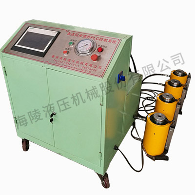 該同步頂升系統由PLC電控系統系統、液壓系統,監測系統構成,基于閉環(huán)系統控制理論,通過(guò)位移傳感器和壓力傳感器,將采集到的位移壓力數據反饋至CPU,CPU經(jīng)過(guò)計算實(shí)時(shí)數據,輸出控制信號控制油泵,或電磁閥,或比例閥來(lái)控制進(jìn)入千斤頂的液壓油流量,以實(shí)現位移的同步。我公司生產(chǎn)的同步頂升系統可實(shí)現4點(diǎn)、8點(diǎn)、12點(diǎn)、16點(diǎn)、20點(diǎn)、24點(diǎn)等多點(diǎn)同步升降的控制。有高壓30MPa和超高壓60MPa同步頂升系統。